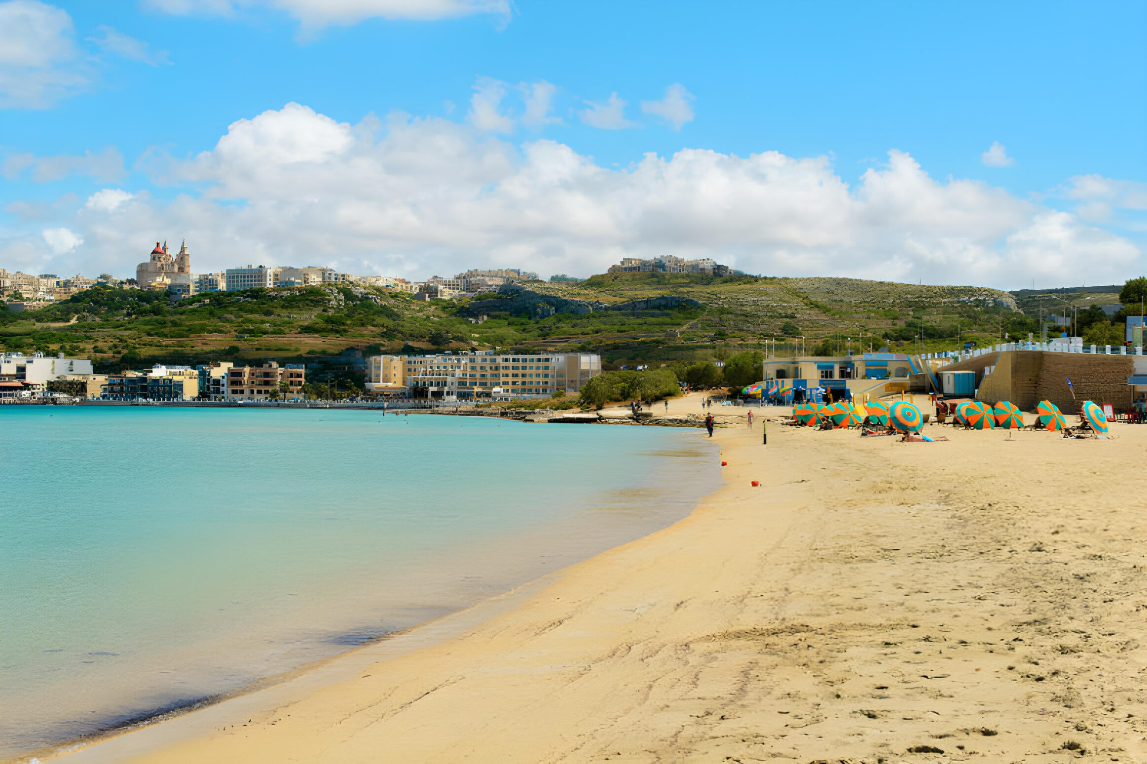 Mellieħa Bay is Malta’s largest, and most popularly visited beach, and is located in the North of the main island, on the outskirts of the village of Mellieħa. The beach is also known as Għadira.