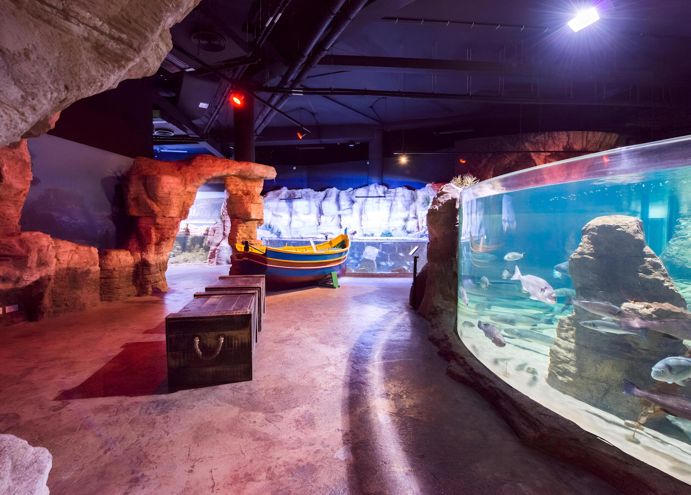 The Malta National Aquarium, located inside the iconic starfish-shaped shell, has 51 tanks on display with over 250 species, including those native to the Mediterranean, but also some from other parts of the world. Among these are freshwater and saltwater fish, jellyfish, reptiles, amphibians, and insects. The exhibits are themed in accordance with Malta's historical landmarks and every tank is unique to a specific species' natural underwater environment.